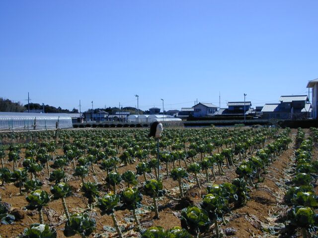 ..どうです、なかなか良い姿をしているでしょう [;^J^]。ちょうどその場に、この畑の持ち主の農家の人がいたので、許可を得て撮影したのだが..やはり、人間を遠ざけるためではなく [;^J^] 鳥を追い払うために設置したのであるとのこと。当初は効果があったらしいが、すぐに鳥が慣れてしまって..というのは、お約束の展開だが、そういうことならマネキンの首だけではなく、トルソとか腕とか脚とかをとっかえひっかえ植えればいいのに..と思いましたが、もちろん進言しませんでした [;^J^]。(“事件”になるかも知れんしね [;^J^]。)しかしそれにしても、対“鳥”兵器であるならば、なぜに道路に顔を向けて並んでいるのかね。[;^J^]