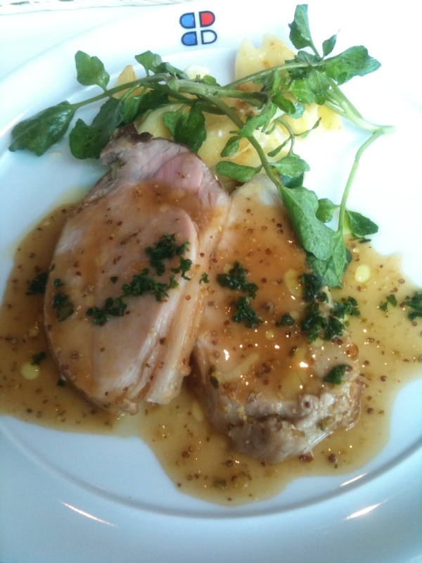 左から順に、「サーモンのリエット サラダと共に」「豚ロース肉のロースト リヨン風グラタン添え ソース・シャルキュディエール」「“ムッシュ ポール ボキューズ” のクリーム・ブリュレ」..呪文料理((C)のだめ)というほどではないが [;^J^]、ひとかみふたかみ、しかねない [^.^]。なかなか美味しく、満足した。強いて言えば、メインの肉料理のクオリティが私の予想を下回っていたのだが、ウェイトレスのお姉さんが実にキュート(とくに笑顔が最高)なので、この程度のことは、全部チャラだ! [;^.^]