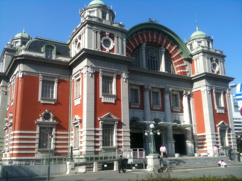 ここから少し歩くと、すぐに中之島である。橋を渡った真正面にいきなり素敵なレトロビルがあるが、これが大阪市中央公会堂。タビリエによるとここのレストランで美味いオムライスが食えるらしいので、昼食はここにしよう。もちろんまだ8時前で入ることはできないので、まずは中之島を東側に散策する。