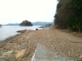 12時に発ったが..まったく想定外の事態が発生。大崎半島の東岸から南岸にかけて、つまり概ね、三ヶ日青年の家から新瀬戸橋手前、礫島を臨む当たりまでの湖岸のサイクリング道路が荒れている。数えたわけではないが、10個所(20個所?)以上で、かなり大量の(貝塚のごとく貝殻混じりの)土砂が打ち上げられている。なんとか走れる個所もあるが、数十センチもうずたかく積もっているところも多く、自転車では危険で乗り越えられない。(踏み固められた砂利道ではなく、ふわりと乗っているだけなので、車輪がずぶずぶと沈んでハンドルを取られるのである。)降りて押さなくてはならない。前回の浜名湖一周サイクリングのとき(9月29日)には、こんなものは無かった..一体、何故?