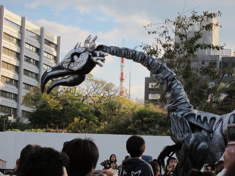 「ヴァシヴェン シルコ」のパフォーマンスが終わってからほどなく、となりの広場で恐竜が動き始めたので、あらためて慌ててかけつける。