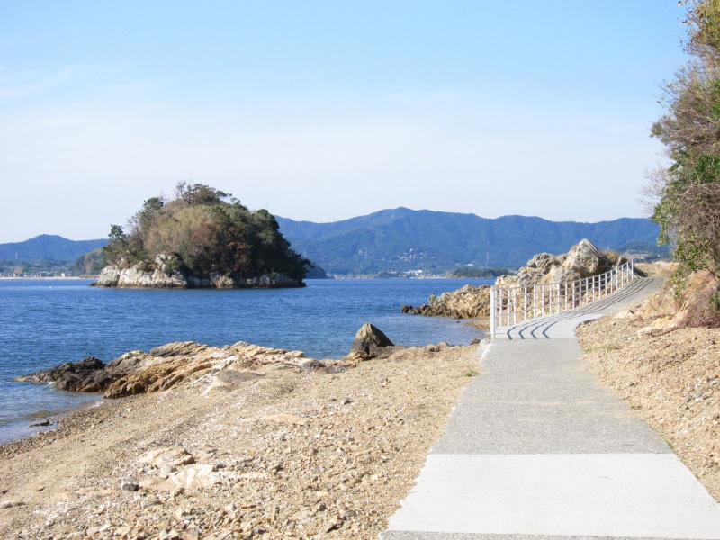 前回(10月14日)悩まされた、10月1日の台風の傷跡(湖岸のサイクリングロードを覆う土砂)の後かたづけは、全てすんでいた [^J^]。左の写真は前回の写真、右の写真が今回のもの。ダイダラボッチ伝説が残る浜名湖唯一の島、礫島である。