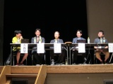 「自由部門」を「iPS細胞」で受賞した「京都大学iPS細胞研究所」を代表して、八代嘉美氏。「ノンフィクション部門」を「情報処理2012年05月号別刷「《特集》CGMの現在と未来: 初音ミク,ニコニコ動画,ピアプロの切り拓いた世界」」(← 星雲賞史上、最長タイトル [;^.^])で受賞したゲストエディタ、後藤真孝氏(産業技術総合研究所)。「海外長編部門(小説)」を「アンドロイドの夢の羊」で受賞した著者/訳者:ジョン・スコルジー/内田昌之を代表して、内田昌之氏。「日本長編部門(小説)」を「屍者の帝国」で受賞した円城塔、伊藤計劃両氏を代表して、円城塔氏。後藤氏からは、「人間の歌声でなければ無価値である → 人間の作品でなければ無価値である → 人間の聴衆でなければ無価値である、という、従来の価値観(の流れ)に対して、ミクは、「人間の歌声でなければ無価値である」を、打破した。では、「人間の作品でなければ無価値である」、さらにその先の、「人間の聴衆でなければ無価値である」、という価値観は打破されるのだろうか?」、という興味深い問題提起がなされた。また、円城氏の「今(の男子)は、(もはや)ゲームをすることすら、しない。ゲームを攻略している動画を見ているだけである。そこまで受け身になっている」という指摘に対する、後藤氏の「同様に、音楽が受動的な世界になったが、技術の進歩により、音楽創作へのハードルが下がった。ゲームが、受動的な世界になっているとしても、同じようなことが起きないだろうか?」という返しも、面白かった。円城氏の、「宇宙規模の言文一致。宇宙人に通用する小説を書こう!」は、会場を大いに沸かせた。