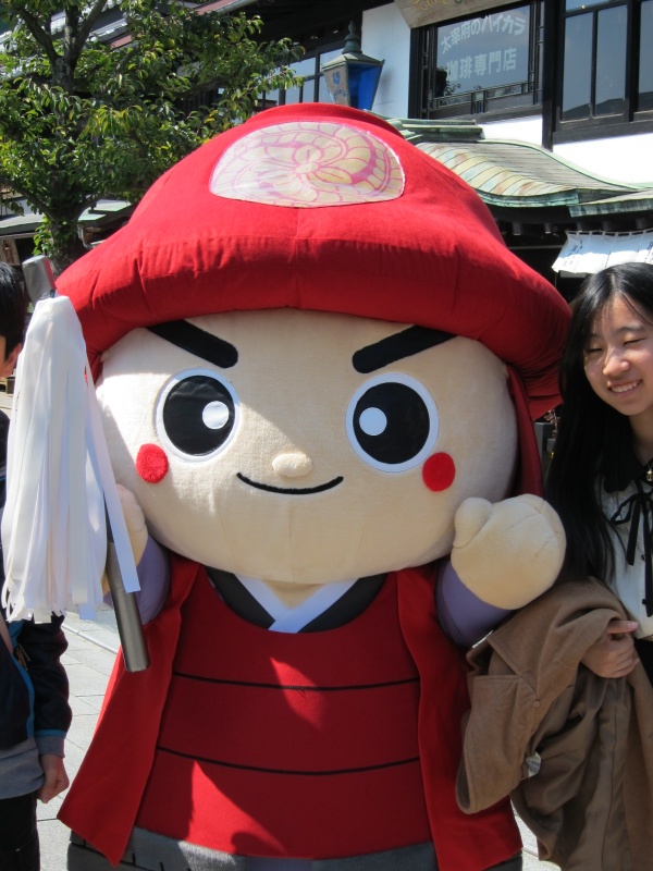 せっかくだからというか礼儀なので、「東風ふかば」の歌碑は、押さえておく [;^J^]。その右の写真は、参道にいたゆるキャラ「ふくおか官兵衛くん」である。「特技:采配、築城 / 趣味:温泉、茶の湯、和歌を詠む / 好物:献上される県産品に目がない」、だそうである。[;^J^]