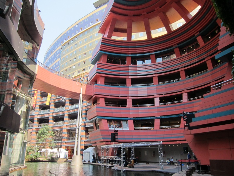 えーと、どこからがキャナルシティなのかよくわからんが [;^J^]、多分、11:20頃に着いたのかな..なんなんだよ、このグネグネウネウネした回廊はよ [;^.^]。確かに大規模な施設なのだが、「全貌を容易に見通せない複雑な構造にする」ことによって、実際以上に広大な空間に見せている。
