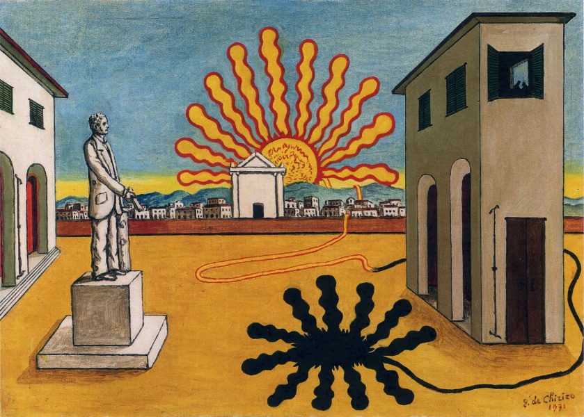 晩年の作品の全てが「自己複製」であるわけではない。たとえば「燃えつきた太陽のあるイタリア広場」(1971)の類例は、少なくとも1910年代〜1930年代には存在しないと思う。まさに奇想である。