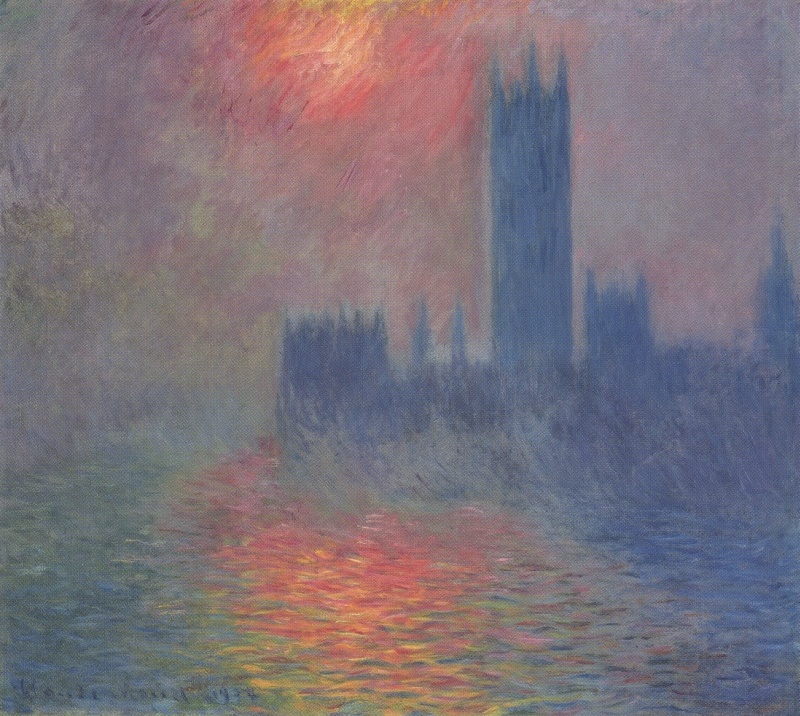 印象派にはいまいち惹かれない..と、何度かこの日記に書いているが、悔しいことに、その印象派の領袖とも呼ぶべきクロード・モネの、この「国会議事堂、日没」の前で、完全に足が止まってしまった。動けない..悔しい..[/_;](← だから、なぜ。[;^J^])