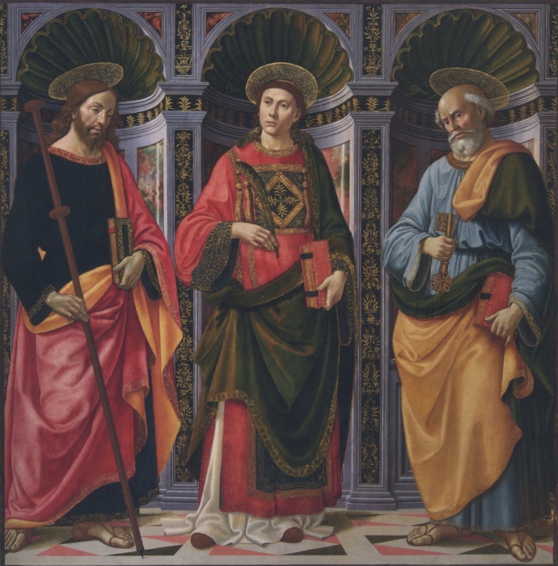 まずは、ドメニコ・ギルランダイオの「聖ヤコブス、聖ステファヌス、聖ペテロ」。展示順序のトリックではあるが、いかにも「ルネサンスの幕開け」という雰囲気。中世の宗教画(聖人画)とは、完全に異なる。