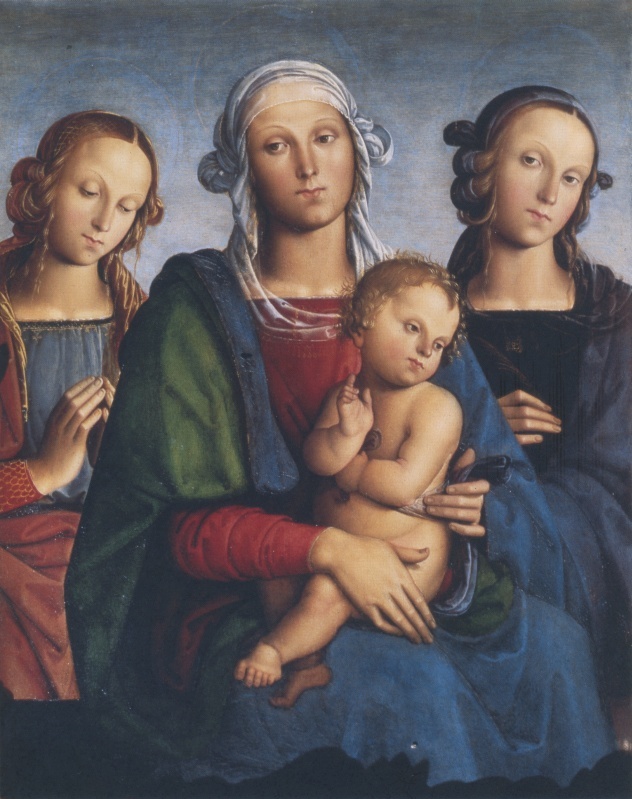 ペルジーノ作品を、3点ご紹介。左から、「哀れみのキリスト(ピエタのキリスト)」、「悲しみの聖母」、「聖母子と二人の聖人」。特に「聖母子と二人の聖人」では、同じパターンの色っぽい顔が並んでいるのが面白い(← 不敬罪相当。[;^.^])