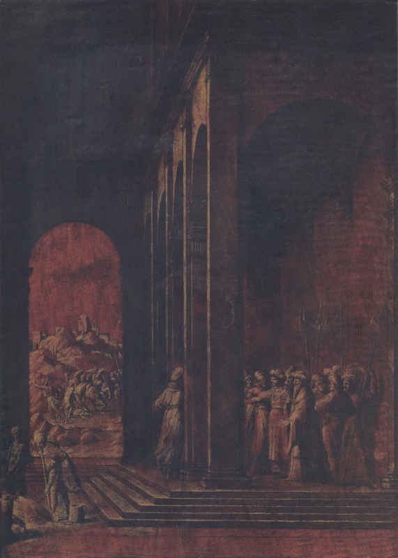 フランチェスコ・グラナッチの「銀杯の探索を命ずるヨセフ」。この作品の背景となっている物語の説明は、面倒なのでパス [;^J^]。よくみると、前景の登場人物が透けている。未完成作品、というよりは「下絵」らしい。