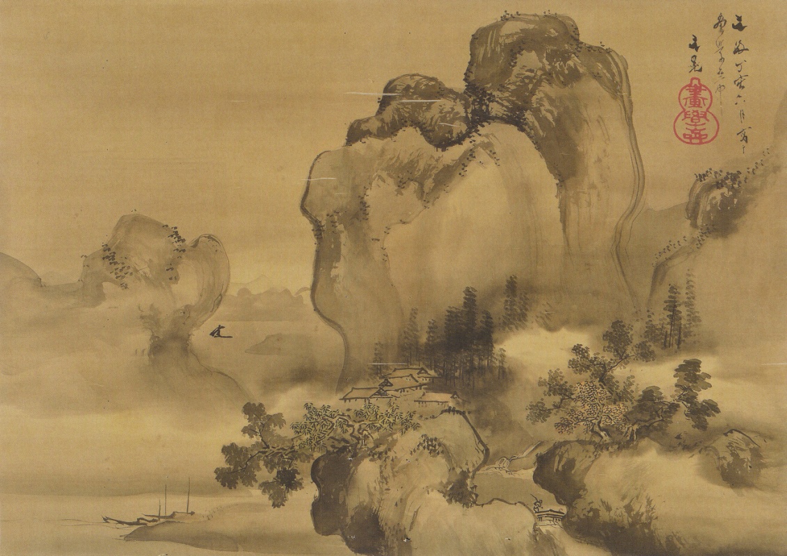 残念ながら図録には収録されていないのだが、ひとつひとつの作品に「教授(鑑定家)」のコメントが付けられており、これが滅法、楽しいのである [^J^]。例えば右図は「谷文晁」の「山水図」なのだが、「この大きさで本物であれば..惜しい」とか。他にも、「迷うところですが、本物でしょう。この程度の作品を描くこともあるでしょう」(つまり、ニセモノと判定されかねない、あまり上手ではない絵だったのである [;^J^])とか、「今回の贋作の中で最高の評価を得た作品。正直申し上げて、私も最初は本物と判断しましたが、同業の研究者にも見てもらったところ、顔の描き方が違う、とのことでした」とか。