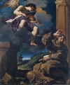 左図は代表作のひとつ、「キリストから鍵を受け取る聖ペテロ」。右図、「聖フランチェスコの法悦」の、空の青!
