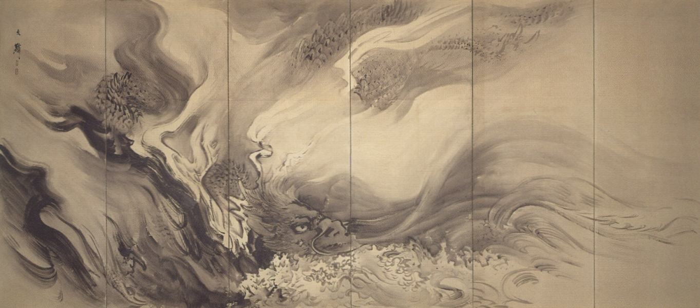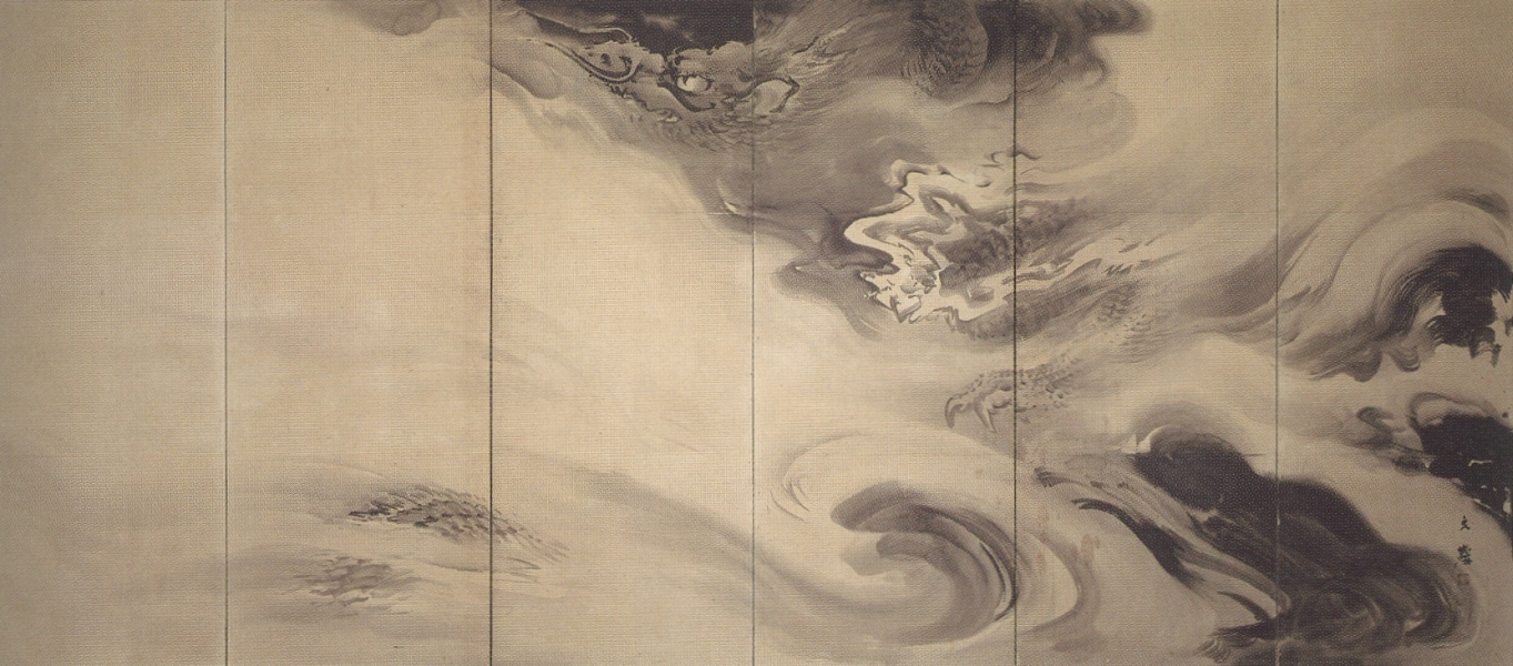 どでかい屏風図も紹介しておくが..塩川文麟の「雲竜図屏風」。残念ながら描線の迫力は、画像ファイルでは再現できないなぁ..