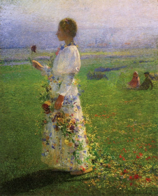 左図は、アンリ・マルタンの「野原を行く少女」。腰のあたりから散り飛んで行く、花の描写が幻想的で印象的。