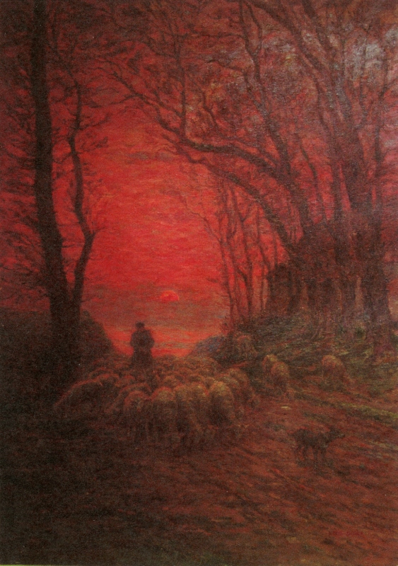 右図、アンリ・デュエムの「羊飼いと羊の帰還」が、図録を買えなかった理由。図録では、この「赤」が、ほとんど「オレンジ色」に近く、あまりに実物と違い過ぎるので躊躇してしまったのだ。(ちなみに本物は、もっと赤い。)いい絵だ..