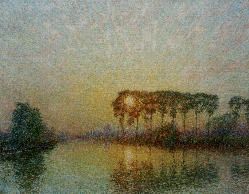 左図は、この展覧会のポスターにもなっている、エミール・クラウスの「リス川の夕陽」。この光!(画質が万全ではない絵葉書からスキャンしたjpegファイルなのだから、伝わらなくても仕方がないが..)確かに、「最後の印象派」と括りたくなる気持ちは、わかる。