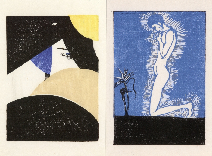 左図が、恩地孝四郎の「望と怖」。右図が、田中恭吉の「五月の呪」。