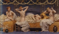 右図は、フレデリック・レイトンの「エレジー」。ここまでくると、もう理屈はいっさい無し。このあまりにも美しい肌の質感に酔っていただきたい。