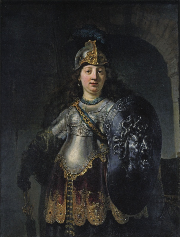 右図は、この展覧会の目玉その二。レンブラント・ファン・レインの「ベローナ」である。神話の女神の威風堂々(盾を飾るゴルゴンをご覧なさい!)と、女神の顔の親しみやすい庶民性のアンバランスぶりが、面白い。(私、個人的には、二重顎に着目しております..[;_ _][;_ _][;_ _][;^.^])