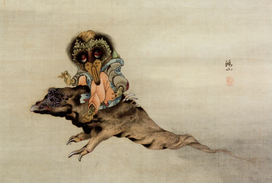 もうひとつ、これも観たかった葛飾北斎の「天狗図」については、絵葉書が売られていなかったので、画像検索結果のご紹介で、勘弁してください。これが北斎の(しかも、最晩年の)作品だと言われて、誰が信ずるか、という..完全に、現代の漫画/劇画表現である。(この2点は、前期のみの展示なので、あなたがこれを読む頃には展示は終了している。[_ _])