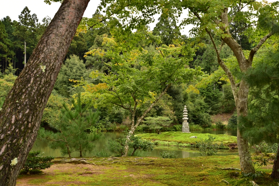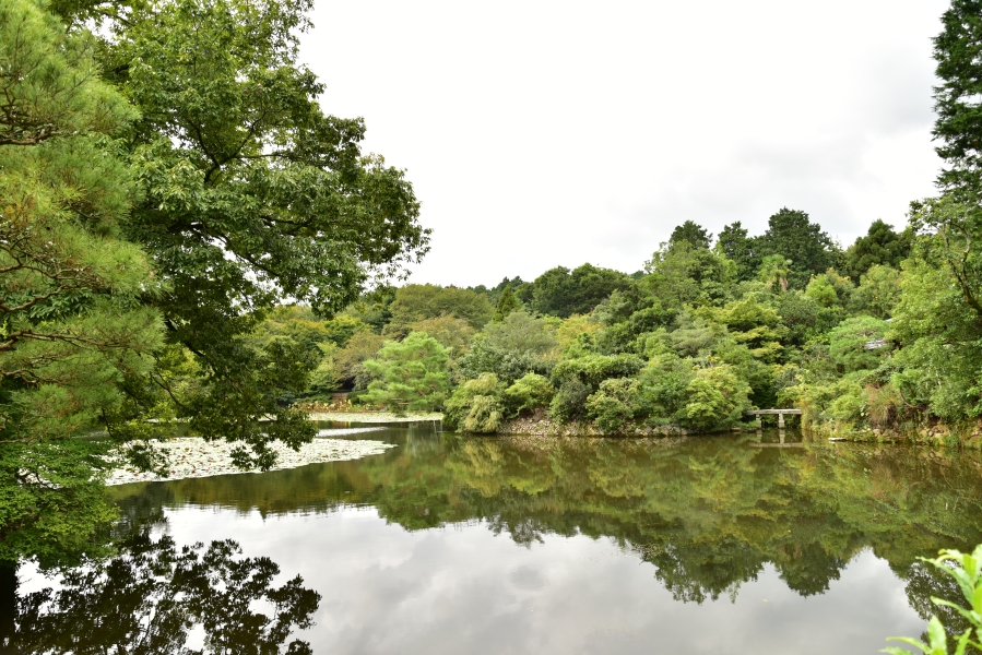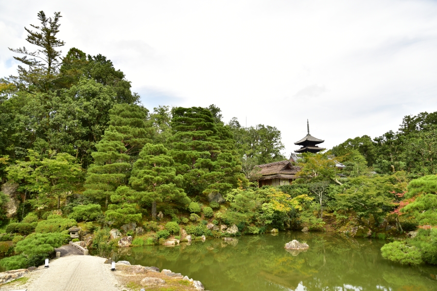 左は、石庭に面する方丈の中の一室の写真だと思うが、部屋の名称を忘れた [;^J^]。中央は、パゴダ。右は再び「鏡容池」を、反対側から。