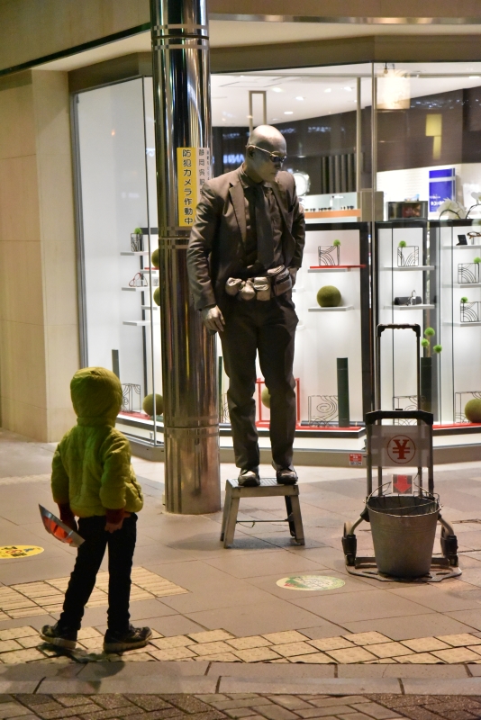 土台となる兄が横たわって、脚を使って弟を跳ね上げ、グルグル回す。この回転速度と回転数が半端ない! 実にシンプルな芸だが、私の後ろに立っていたカップルの歓声と会話が、印象的であった。「こういうのが観たかったんだ!」「これこそ大道芸って感じよね!」..(カメラの設定は、天平のときと同じ。ちなみに、すべてノーフラッシュであるが、これは天平のときも、そう。)