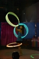 さてさて、倉田が大ファンをさせていただいている [;^J^] カナ∞であるフープダンス、ハットジャグリングもするのだが、メインはやはり、この、光るフラフープである。これを回転させるだけで、さまざまな模様が出現する。それを撮る技術はまだないが、せめてシャッター速度を適度に落として(調整して)ブレさせることによって、面白い写真になるのではないか..と、ここでも敢えて、「シャッター速度優先AE(オート露出)モード」。