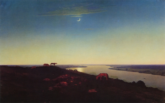 2017年05月02日:幻想美術選「夜の放牧」アルヒープ・イワノビッチ・クインジ「幻想美術選」も、第62回。今回ご紹介するのは、かつて浜松の古書肆の店頭で、とある展覧会の図録を立ち読みしていて、凍りついた作品である。(無論、すぐに買って帰った。)