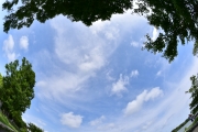 この3枚は、仰望パターン。中央の写真のように空を主役にするときは、それを引き立てる周囲の環境が重要。手頃に開けた箇所が見当たらず、中途半端な出来になってしまった。