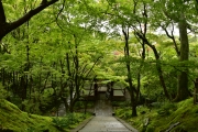 11:15、宝筺院。こぢんまりとしているが、庭園が素晴らしい。秋の紅葉が見事とのことだが、まだその季節ではない。この輝くばかりの緑を見てくれ!