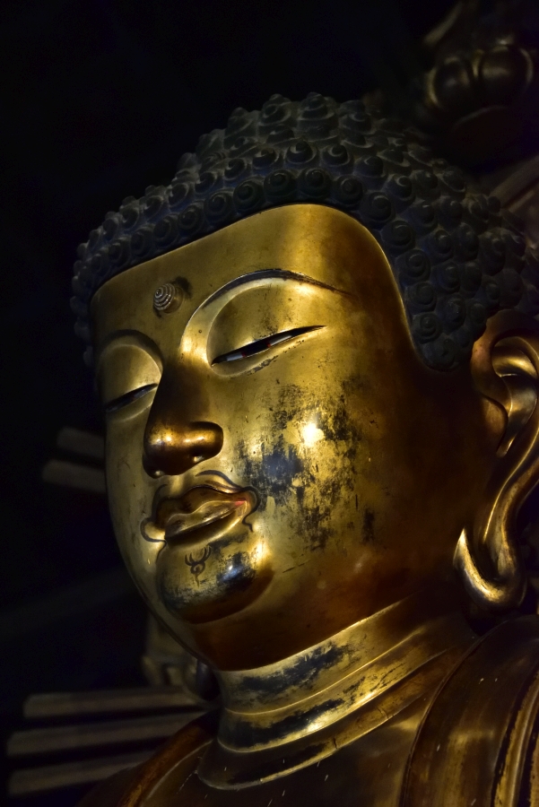 実のところ、「国家安康」だけ押さえとけば必要十分、と見込んでいたのだが(← 失礼な奴 [;_ _][;^J^])、お堂に入ってびっくりした。こんなところに、大きな仏像が。案内のおばあさん(実に元気で明るいおばあさん [^J^])によると、もともとここに建立されていた(焼失した)大仏を、1/10サイズで再建したものだという。もとの大仏は、東大寺の大仏よりも大きかったのだ。