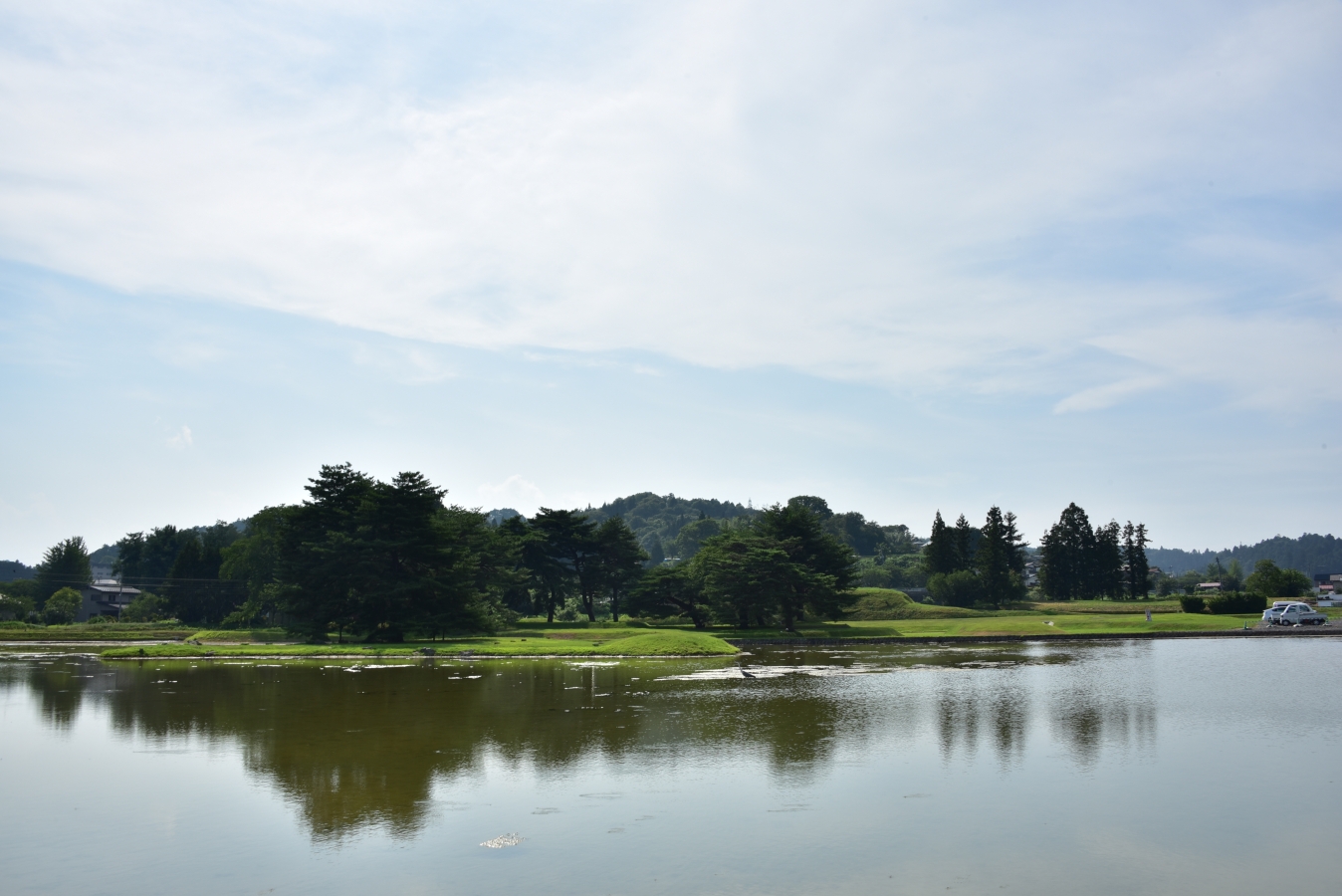 12:35に発ち、12:45、観自在王院跡。庭園の跡..というか、池しか残っていない(左写真)。12:55、隣接している毛越寺。中写真と右写真は、庭園(池)の写真。13:45に発ち、高館義経堂へ向かう。
