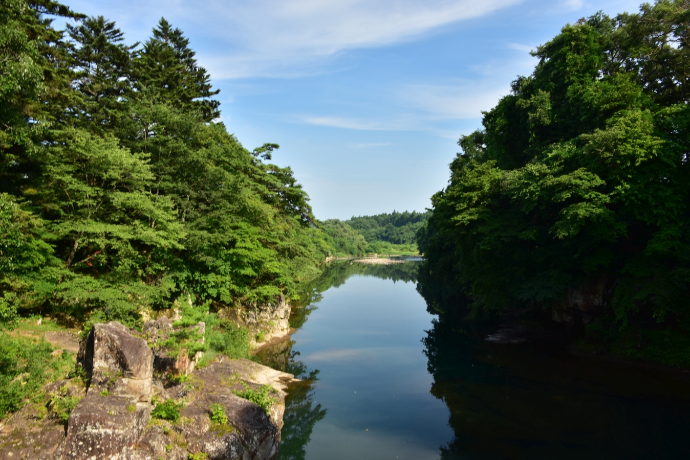磐井川に約2キロにわたって奇岩が連なる渓谷である。2キロも歩いていられないので [;^J^]、厳美渓バス停からあまり離れない範囲に絞って散策する。