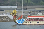11:00出港。平日だからか客は少なく(ほぼ外国人)、遊覧船のデッキを独り占め状態 [^.^]。右写真は、出港直後に通りすがった、御座船(かな?)