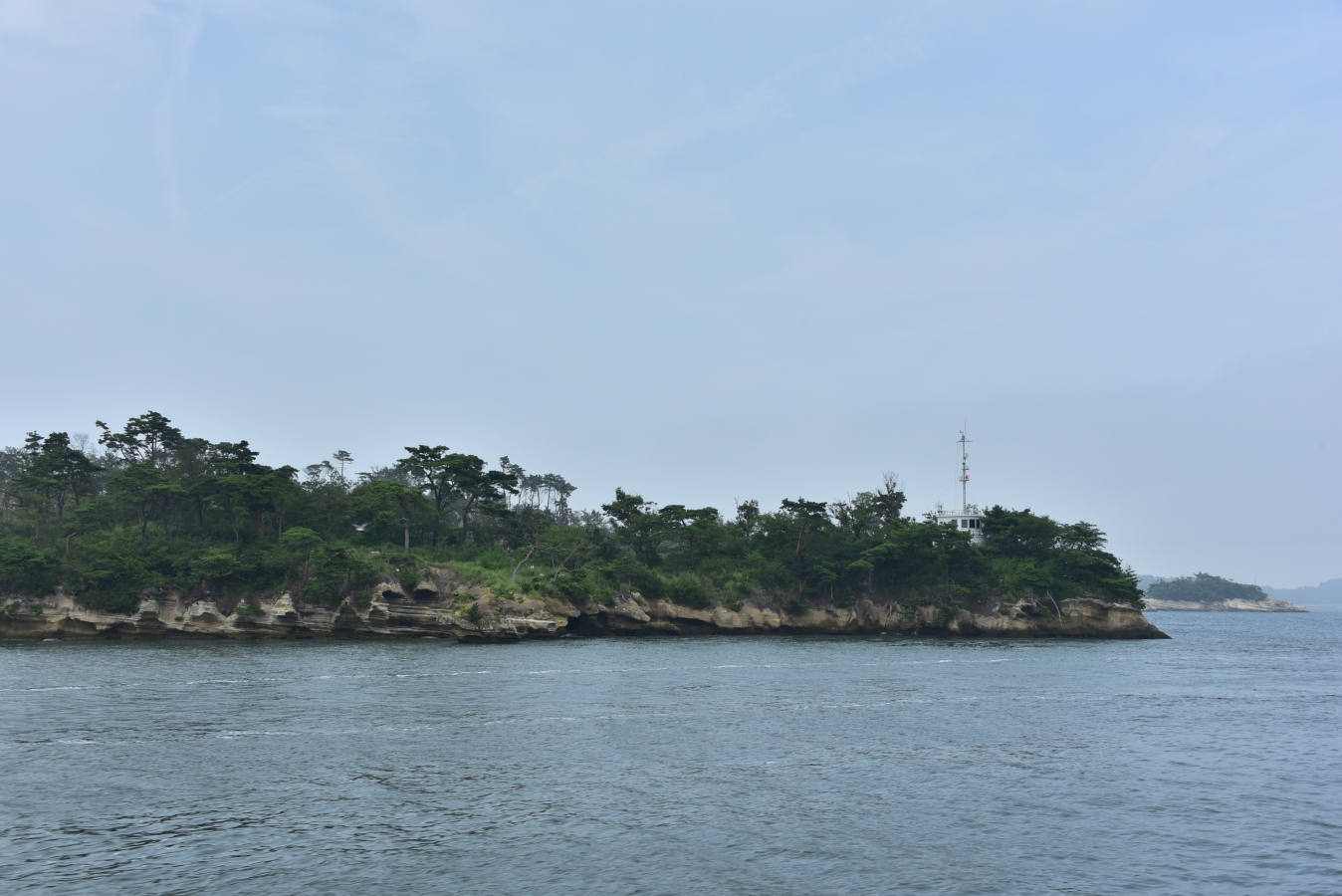 14:25に発ち、観瀾亭に軽く立ち寄って、仙石線松島海岸駅へ。14:52の便で、15:21、野蒜駅に着く。ここからはタクシー。15:25に呼んだら15:34に来てくれて、15:44、大高森登山口。ここから10分少々山道を登ると、「松島・四大観」のひとつ、「壮観・大高森」である。空模様が怪しくなってきた..