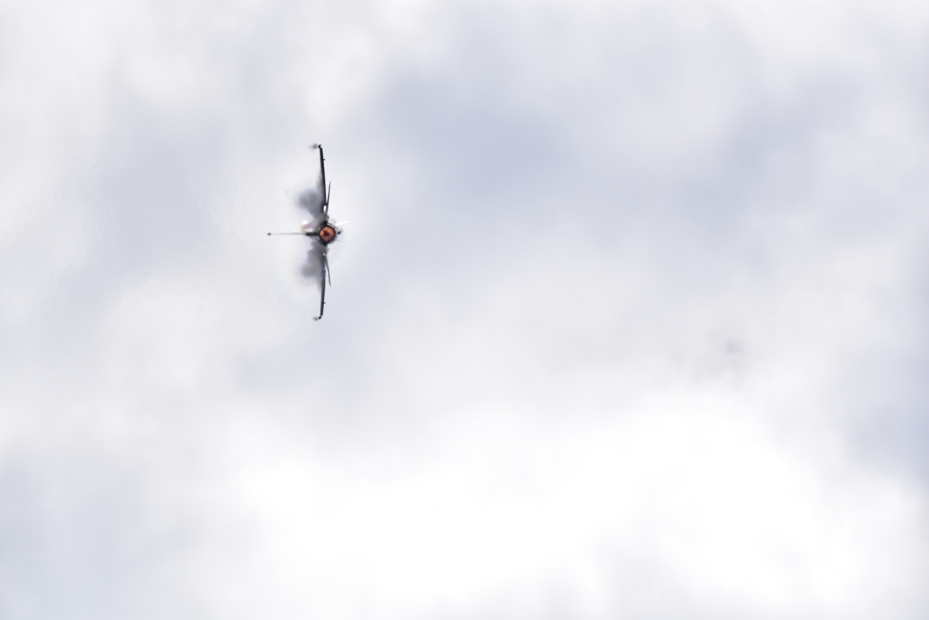 私は今回、200−500mmの超望遠ズームレンズと、28−300mmの標準/望遠ズームレンズを持参した。これはもちろん正しかったのだが、デモ飛行の最中に、これらを換装している時間は、ない。遠方の航空機は、もちろん、500mmで掴まえる必要があるのだが、その一瞬後には、空の広大なエリアに(広角レンズでなければ収めきれない)スモークの模様が描き出されている。これは、たちまち消えてしまうのだ..