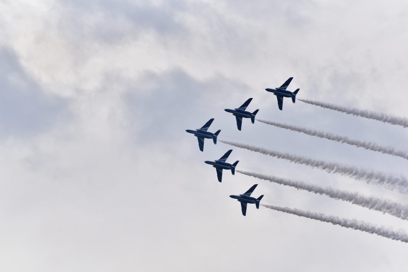 よくまぁ、超高速で、こんな密集隊形で飛べるものだと感心するが、米空軍のサンダーバーズや、米海軍のブルーエンジェルスの密集編隊は、さらに凄いらしい。