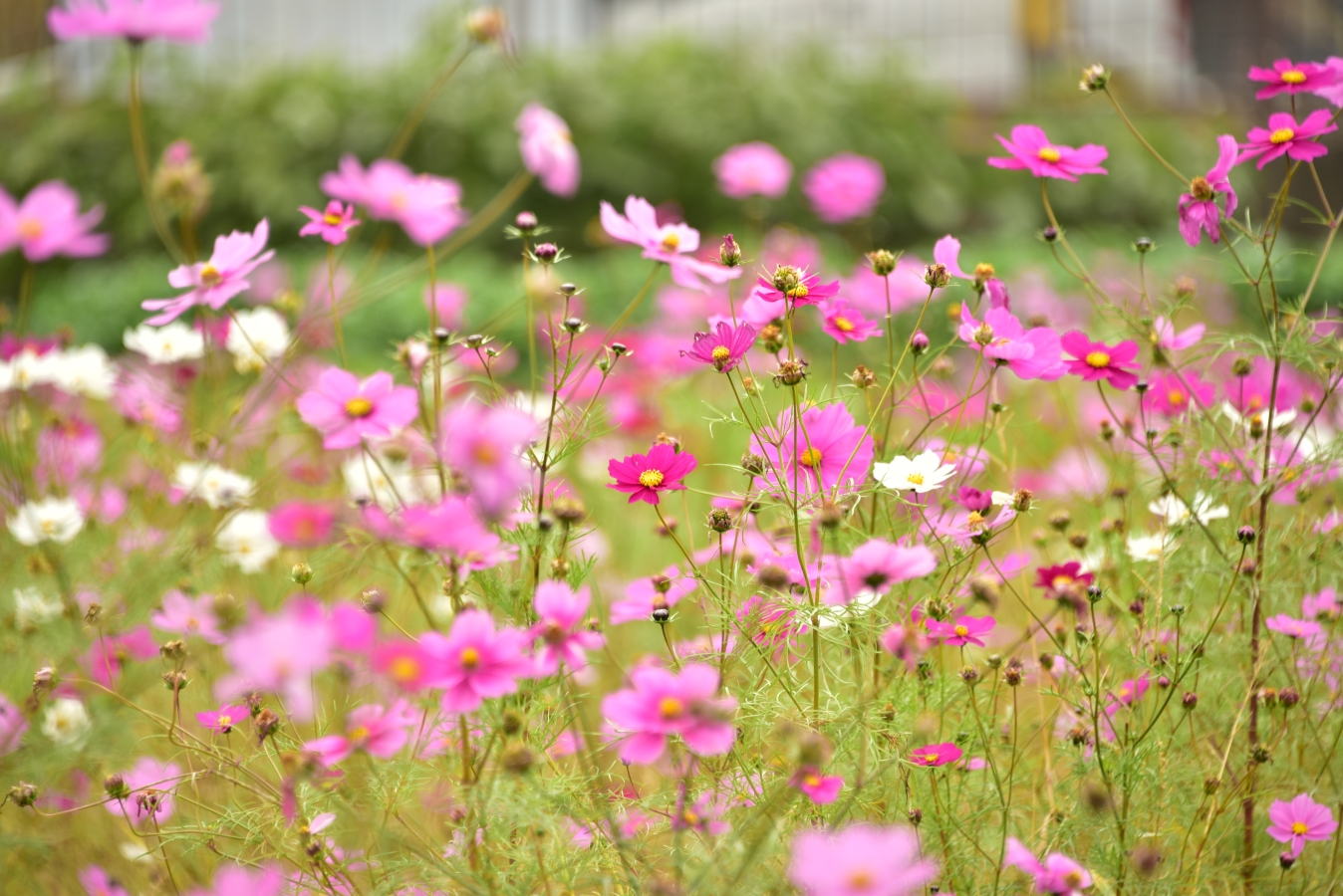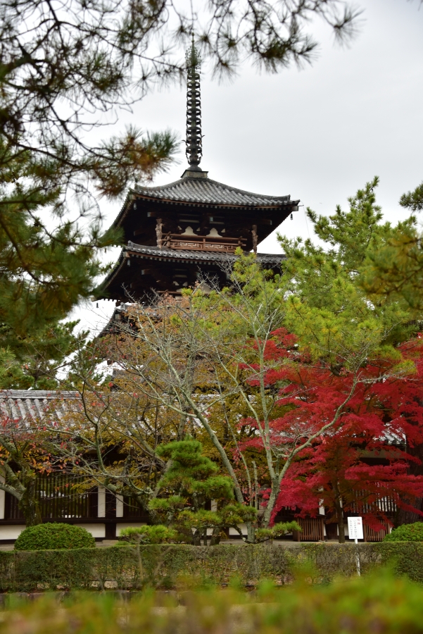 ここもまた、三重の塔(左から2番目の写真)が見どころ。寺の近く(外側)の畑のコスモスが美しいが、コスモス舐めで法起寺(の塔)を撮るポイントが取れないので、こんなことろでお茶を濁しておく。[;^J^]
