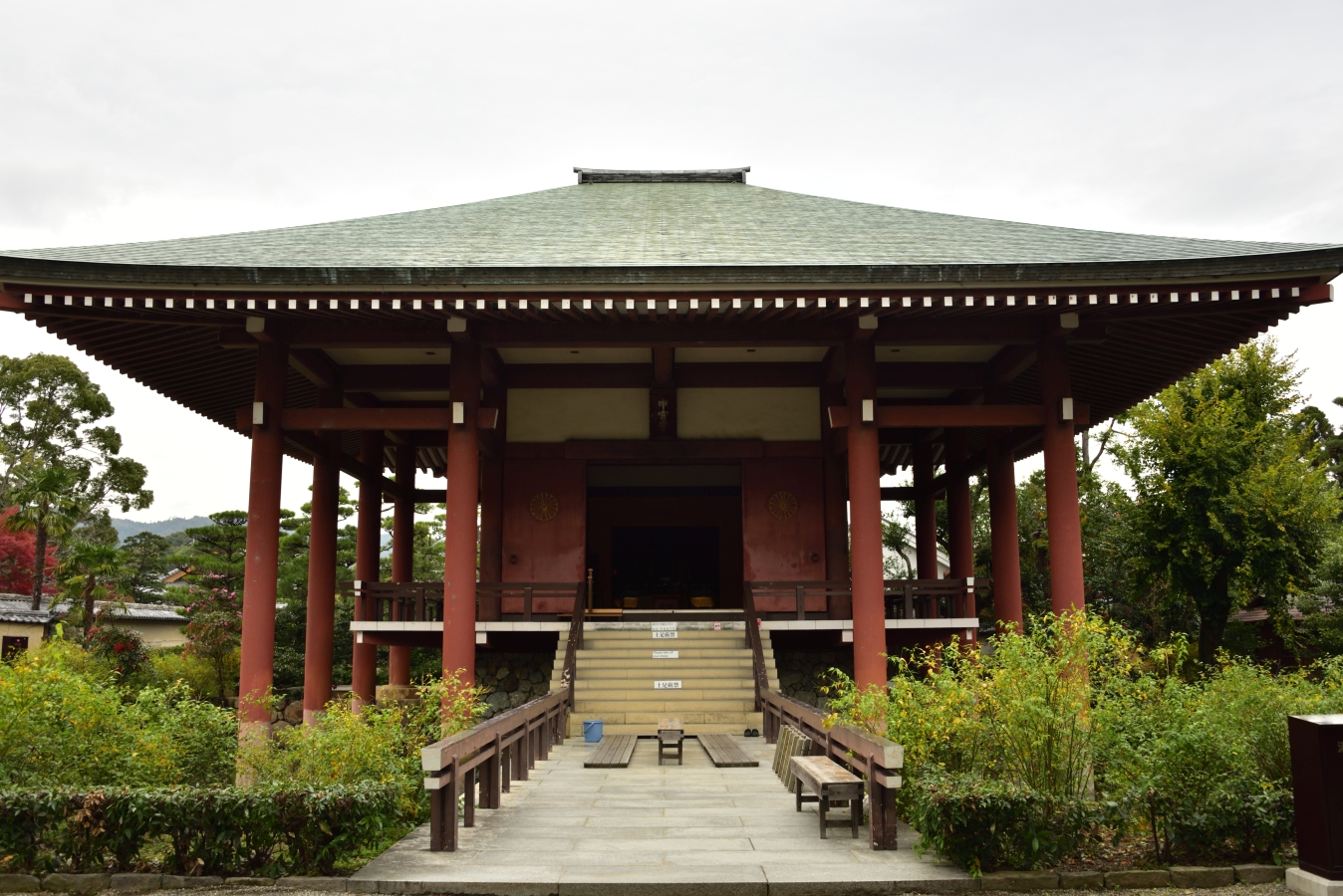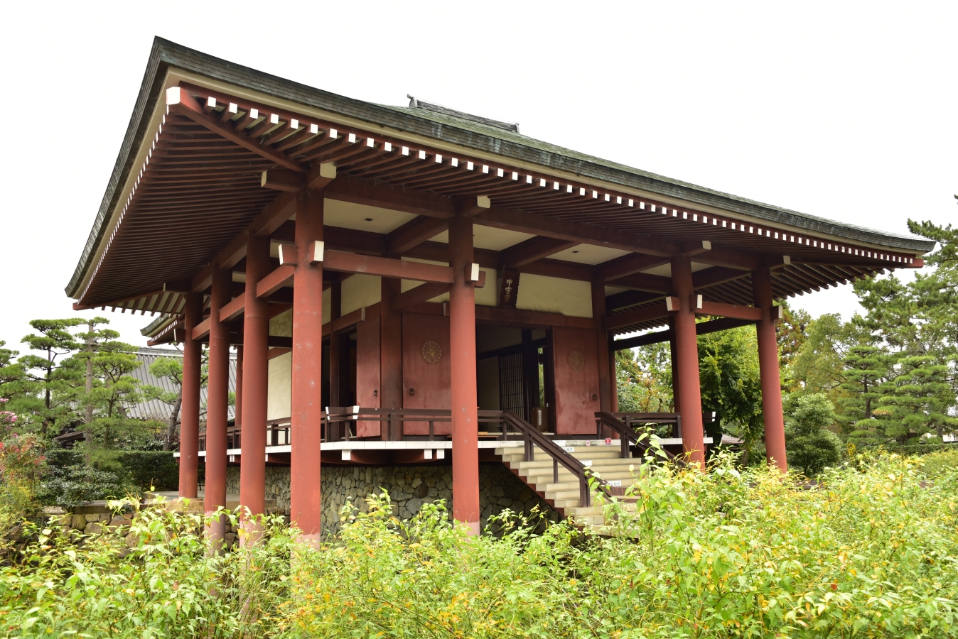 9:50に夢殿を出ると、ほとんど目の前にあるのが中宮寺である。なかなかフォトジェニックなので、しばし撮影タイム。昨日からの万博つながりというわけではないが、日本万国博覧会の松下館と良く似ている..というか、松下館は中宮寺をモデルにしていたのかな? 本尊菩薩半跏像(如意輪観世音菩薩)の美しさは、やはり絶品。「天寿国曼茶羅繍帳」(レプリカ)も面白い。10:20に発つ。