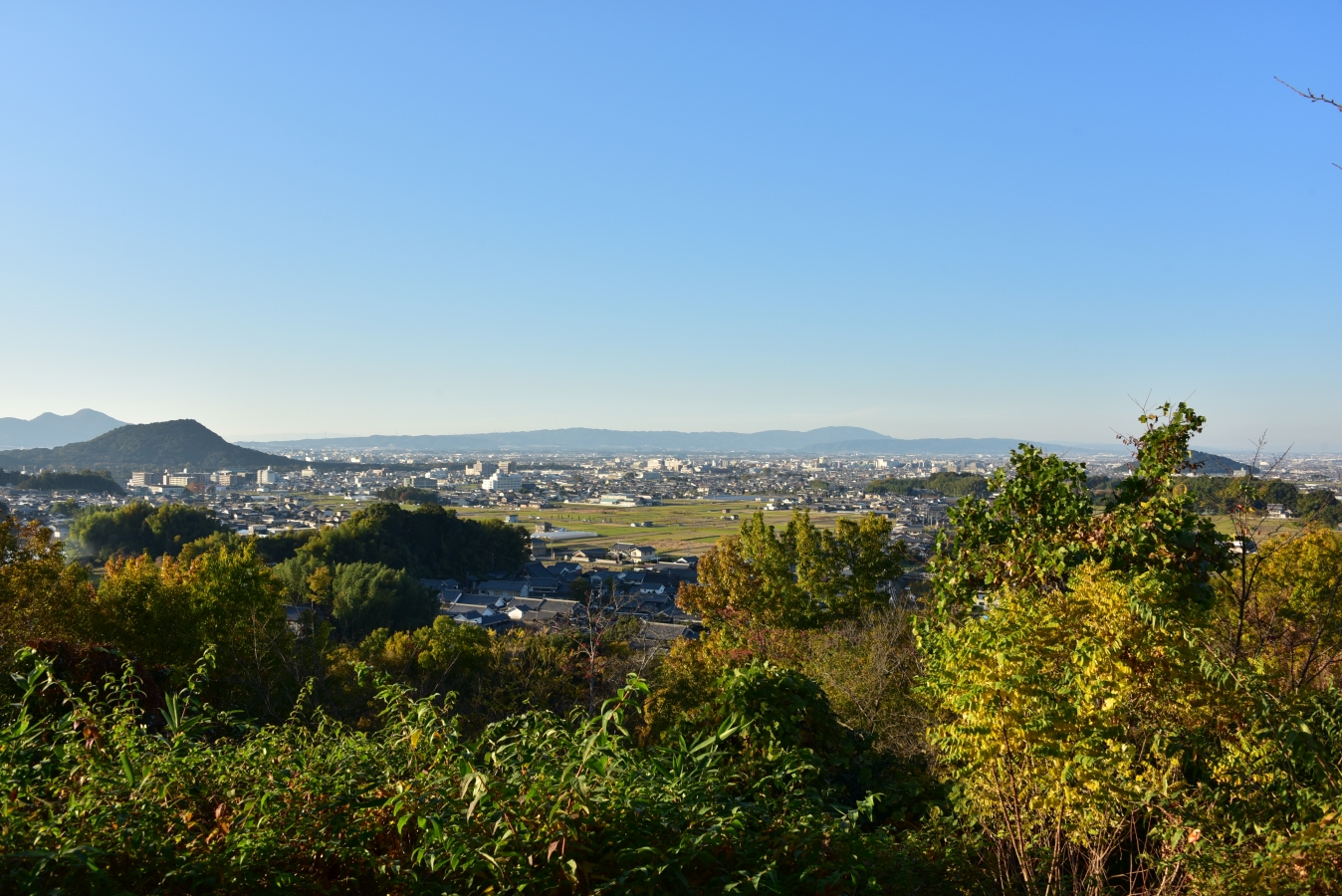 15:40、甘樫丘(スポット8)の展望台の下の駐輪場に着く。ここからは徒歩で長い階段をのぼって、15:45、頂上着。(この高低差を、自転車で登らされなくて、本当に、よかった..[;_ _][;^.^])
