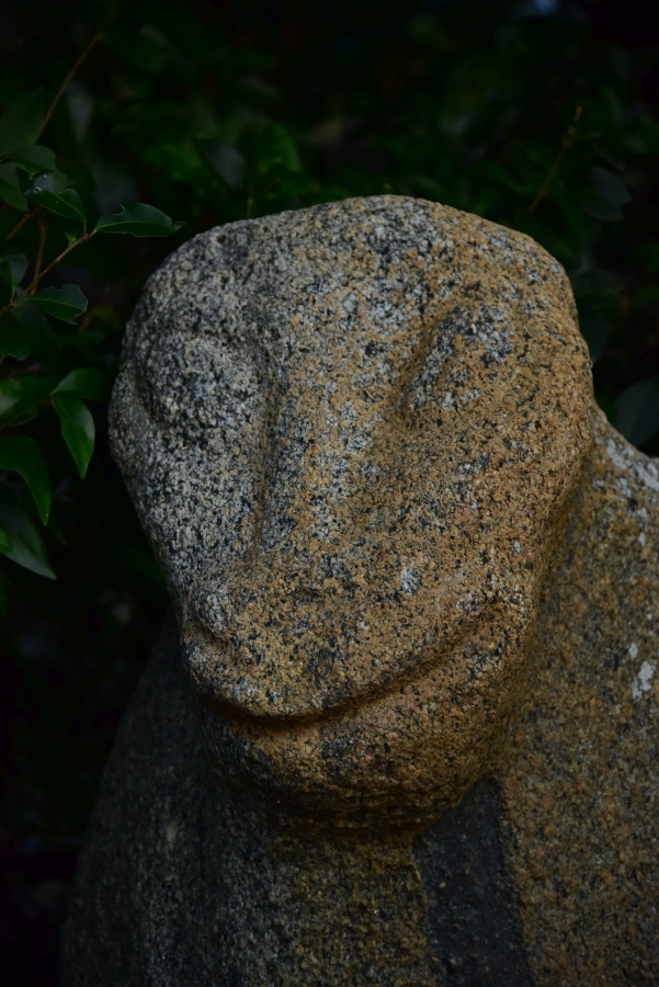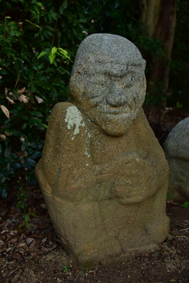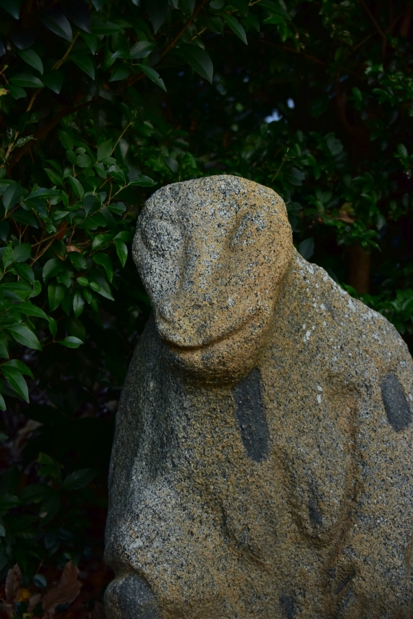 猿石(スポット10)。ここもわかりにくかった [;^J^]。すぐ近くまでは看板が出ているのだが、最後の肝心なところに看板がなく、ほとんど、隠しているも同然である。[;^J^](隠しているのかも知れないが。[;^.^])