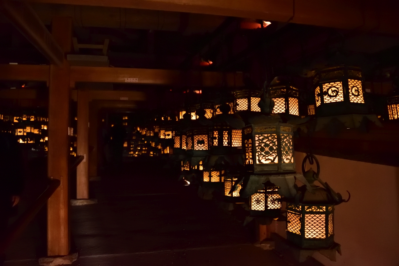 多数の石燈籠。鹿のご神体に人が群れていたので、これも撮っておく。