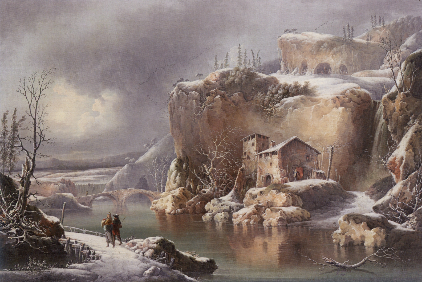 その右の、ヤン・アブラハムスゾーン・ファン・ベールストラーテンの「冬のニューコープ村」と、さらに右隣、フランチェスコ・フォスキの「水車小屋の前に人物のいる冬の川の風景」は、私が特に愛好するタイプの風景画。こんな場所に暮らしてみたい..と、頭の中では思ってみたりするものの、なに、本当にこういう環境に住居をあてがわれたら、そのあまりの不便さや(おそらくは)不潔さに、尻尾を巻いて逃げ出してしまうに決まっているのだ、この、現代日本の快適な書斎でぬくぬくと暮らしているオタクは。[;_ _][;^.^]
