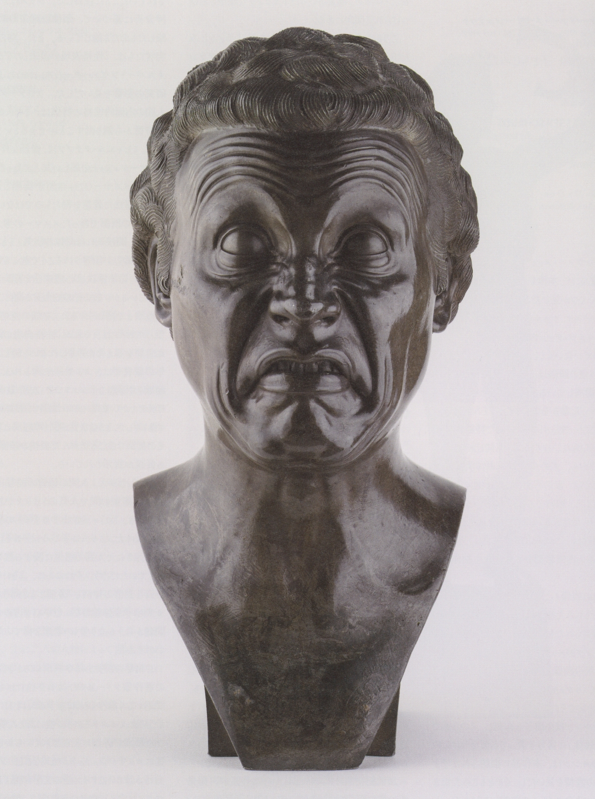 「7.17−18世紀のハンガリー王国の絵画芸術」からは、紹介をスキップさせていただきまして [;_ _](感銘を受けた作品がなかったのではなく、どこかで少しはリストラしないと、今日の日記を書き終えられないのである [;_ _])、「8.彫刻」から、フランツ・クサーヴァー・メッサーシュミットの「性格表現の頭像 子どもじみた泣き顔」(左図)と、同じく、「性格表現の頭像 あくびをする人」(右図)。この作者の「性格表現の頭像」のシリーズは、おそらく2〜3年以内に、なにかの展覧会で観ているのだが、思い出せない [;_ _]。これが「18世紀末」の作品なのだから、驚く [;*.*]。現代彫刻だと言われても、疑う人はいないのではあるまいか。