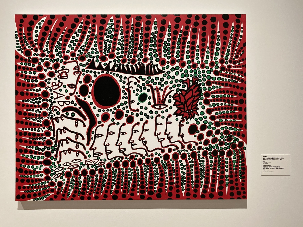 2点だけ、ご紹介しておこう。左写真は、草間彌生の「女たちの群れは愛を持っているのに、男たちはいつも去っていってしまう」。近年の「水玉ではない」作品。