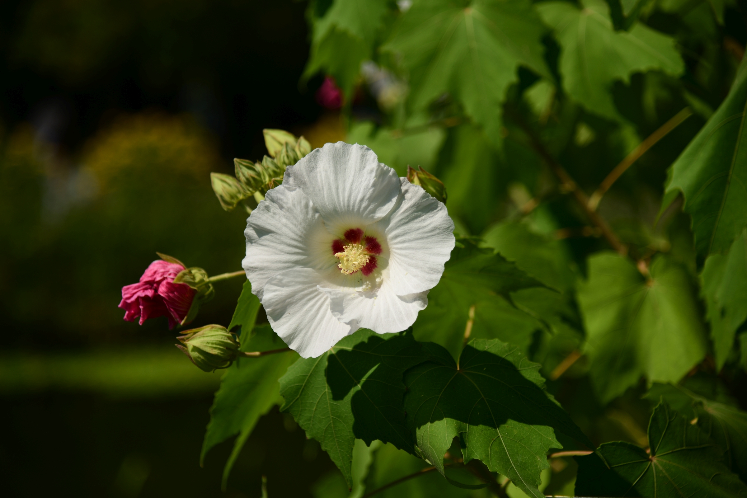 どういうわけか、フラワーパークと異なり、こちらには彼岸花がほとんど植えられていない。赤と白。その隣りの花は、アメリカフヨウかタイタンビカスと思われるが、直径30cm近いのだ。周囲に比較するものが無い場合、大きさを表現するのは、難しい。[;^J^](右端は、オマケ。[^.^])