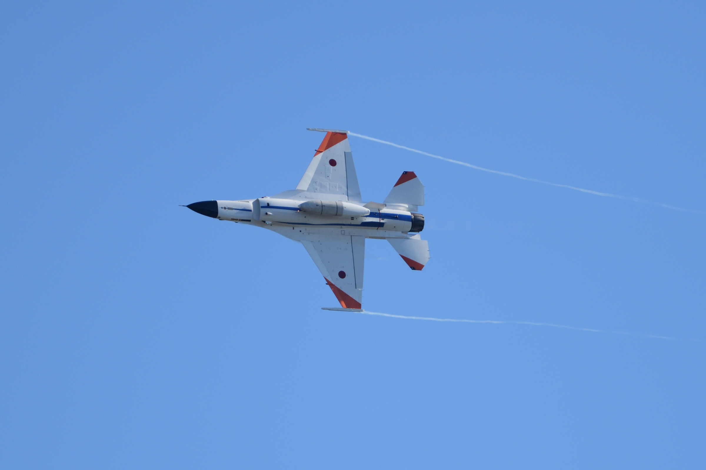 F−2。カラーリングのせいかも知れないが、F−15を「鉄人28号」とすると、こちらはどこか「鉄腕アトム」を想わせ(スルーしてください。[;_ _][;^.^])