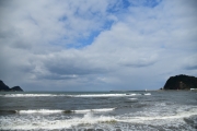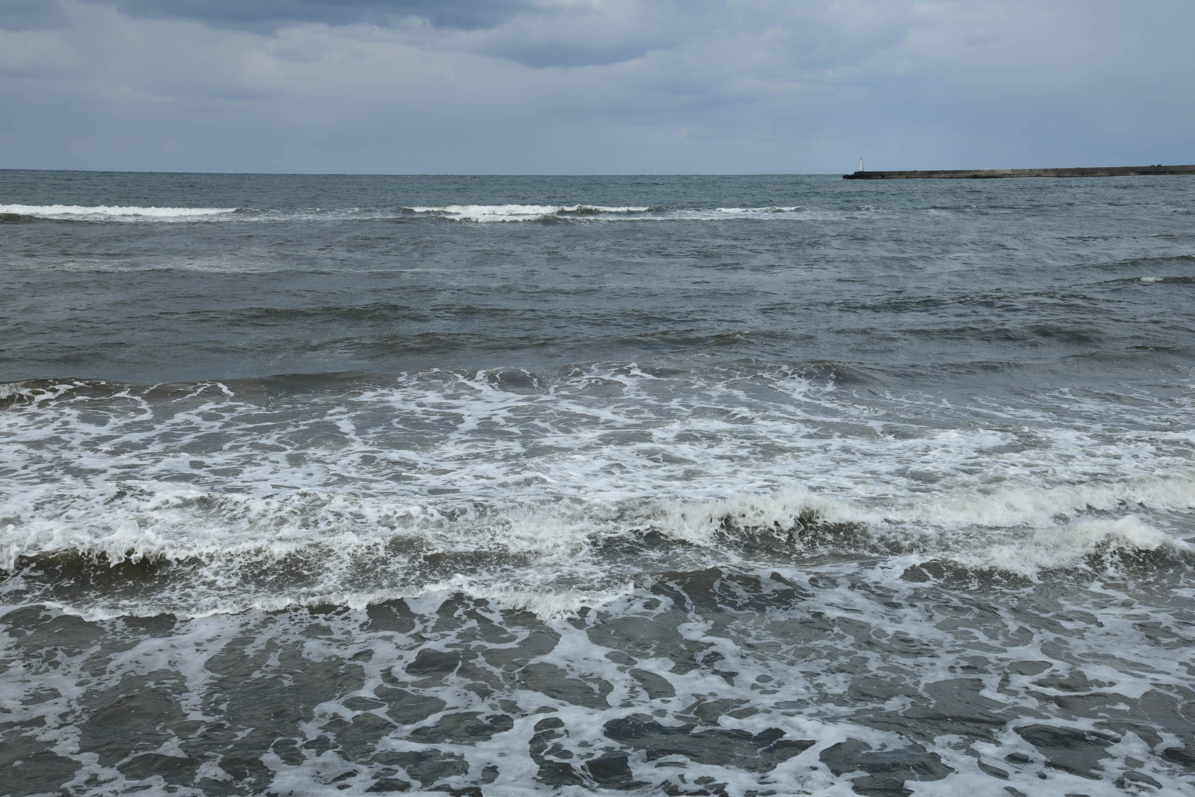 道路をはさんで店の向かい側の「しおかぜ香苑」で写真を撮る。なるほどこれが、日本海の荒波か。[^J^]