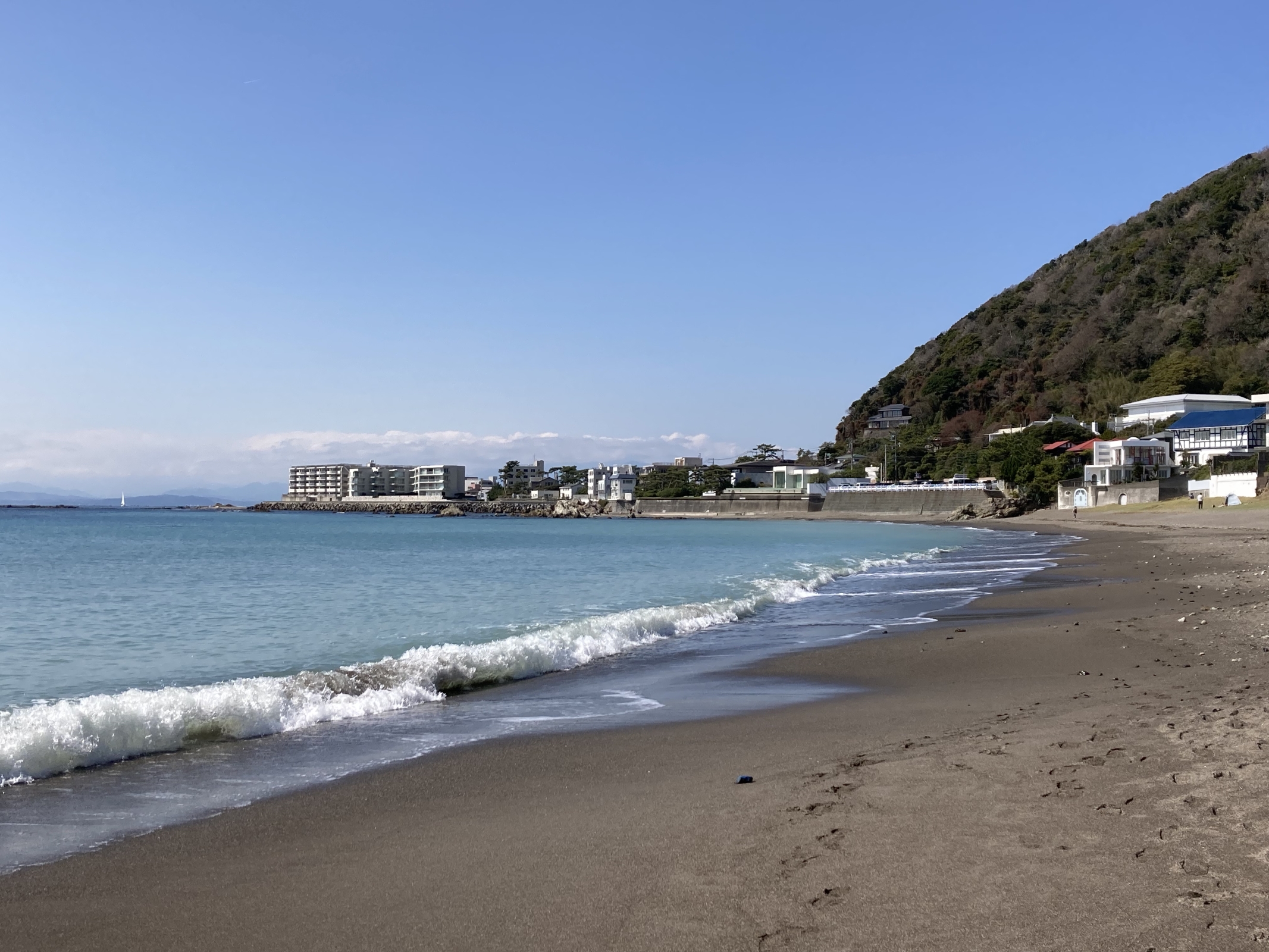美術館を出て、海岸(砂浜)まで降りてみる。100メートルかそこらではあるまいか。写真でよくみる葉山の光景である。ヨットがたくさん出ている(リア充どもが)。