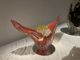西中千人の「呼継「焔躍(ホムラオド)ル」」は、複数のガラス器を一度壊し、それらを溶かして継ぎ合わせたもの。